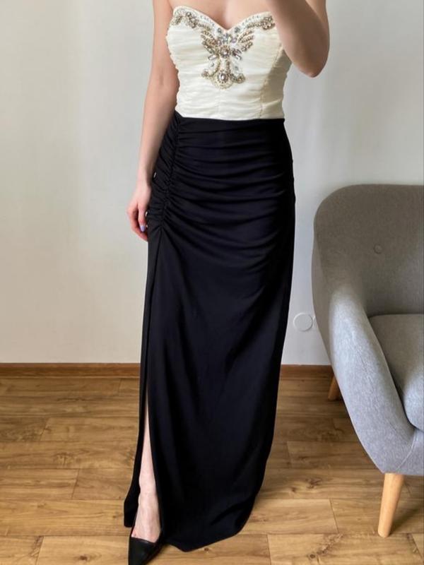 Вечернее платье макси черно - белое Бренд: Lipsy Размер: u9 16, eur42 Состав: 100%полиэстер, подклад 96%полиэстер, 5%эластан - садится на любые настройки в пределах размера. Замеры: в спокойном состоянии Полуобхват груди 50 см Полуобхват талии 43см Полуобхват бедер 53 см ткань красиво тянется Длина 143 см, из которых верх 26см разрез 73см
