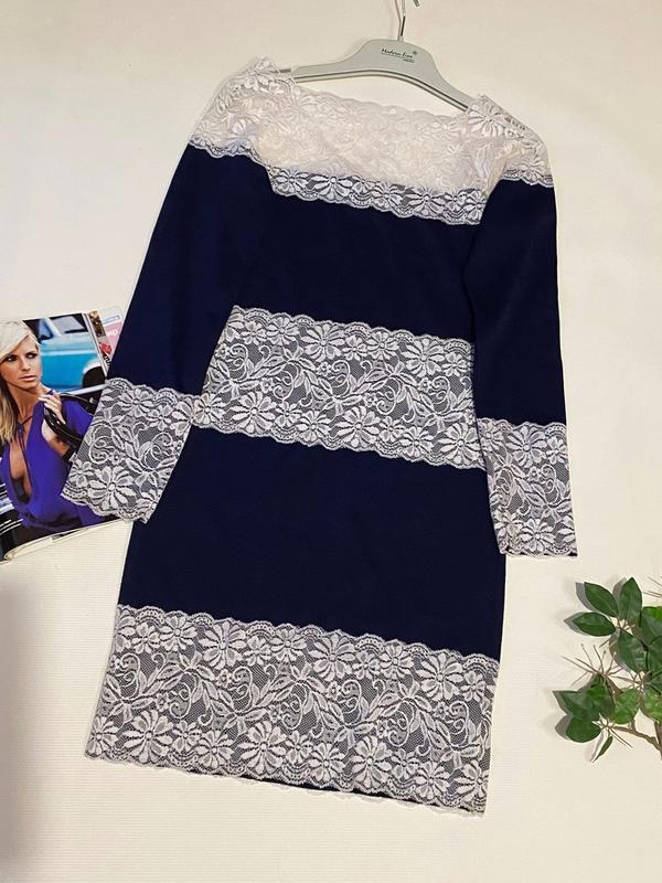 Платье трикотажное с гипюром Размер - написано 42 Ширина (по груди) - 38-44 см Ширина (по талии ) - 34-37см Ширина (по бедрам) - 39-42 см Длина - 81см Рукав - 60см реглан