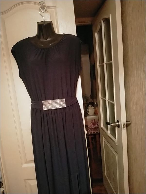 цвет темно синий, шлица сбоку, пояс с украшением. довж. 125, ОГ 110, ОТ 72- 88, ОС 120 см