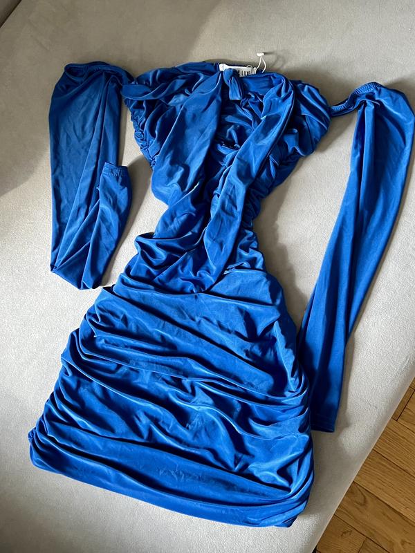 темно синее платье, имеет очень насыщенный цвет размер xs-m жодного разу не одягалась