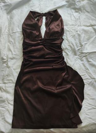 Очень красивое вечернее платье, с плотного атласа, цветошоколадного.Размер М (40), длина ниже колена, изысканная,спинка обнажена, но не вульгарно.Збоку на молнии.Гарно подчеркивает талию.Детали в приват.
