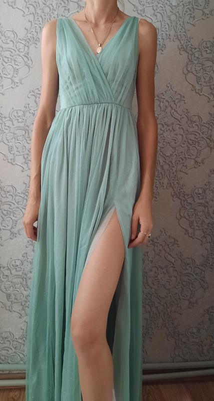 Вечернее фатиновое платье с блестками, имеет разрез по ножке