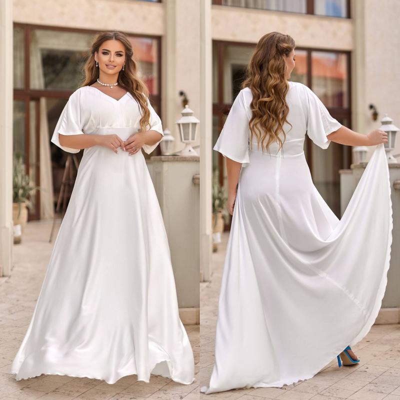 Изысканное вечернее шелковое платье💋 Выглядит шикарно, словно королева👑 ▪️Модель с V-образным вырезом горловины и втачной талией, юбка свободная💓 ▪️По спинке есть потайная молния⚡ ▪️Рукава широкие, цельнокроеные, длиной до локтя💯 Мод: 630ЕУ Размеры: 50-52, 54-56 💵Цена: 1140 грн Размеры: 58-60, 62-64 💵Цена: 1310 грн Тканина: шовк Цвета: фреза, электрик, черный, серебро, красный, бежевый, фиолетовый, пудра, бутылка, белый 📌Замеры: • 50-52 ОГ 100-104, ОТ 80-86, ОБ 124, Длина 145 • 54-56 ОГ 108-114, ОТ 88-96, ОБ 130, Длина 148 • 58-60 ОГ 116-120, ОТ 98-104, ОБ 136, Длина 150 • 62-64 ОГ 122-128, ОТ 106-114, ОБ 142, Длина 150 📍Размер подбираем по талии и груди Наложенный платеж по перед оплате 200 грн