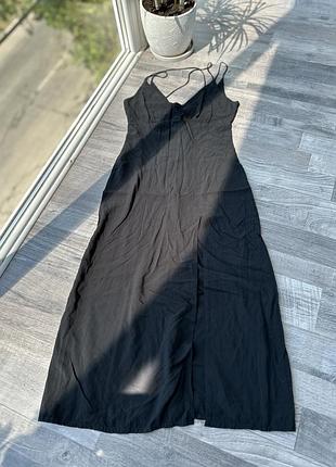 Длинное платье с разрезом, сзади бретеля потертое под волосами в носке не видно