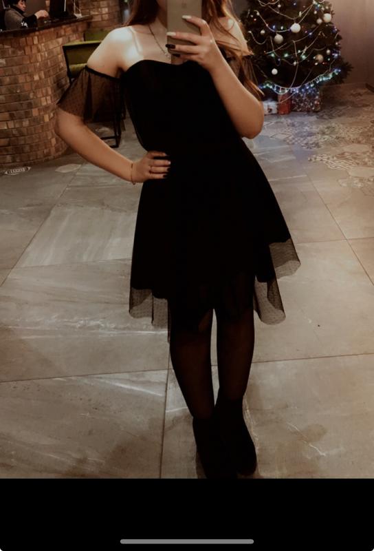 Платье в разомере м, черного цвета. Стан идеален. Очень красиво смотрится на теле. Ткань: Подкладка из плотного материала и фатин Замеры: Длина подкладки 58см Длина изделия 71см Полуобхват груди 40см Полуобхват талии 32см