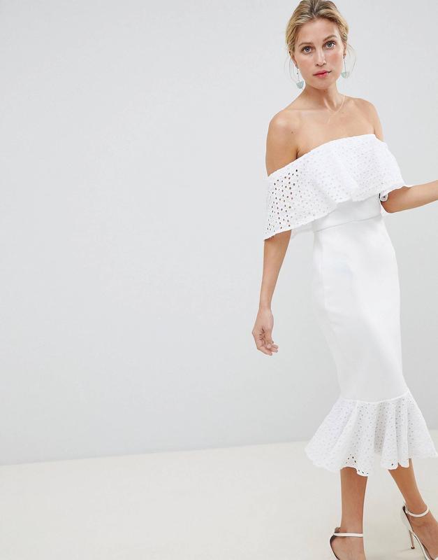 1500 Платье миди с оборкой на подоле ASOS DESIGN Uk8 Пог 43-45 Пит 34-36 Поб 45-47 Длина изделия 91