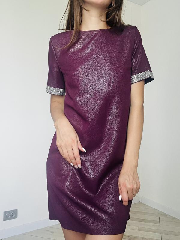Красивое вечернее, праздничное платье. Баклажанового цвета, очень красивая ткань которая полностью в блестках и переливается. Не линяє! На рукавчиках полоски из страз. Сзади застегивается на замок.