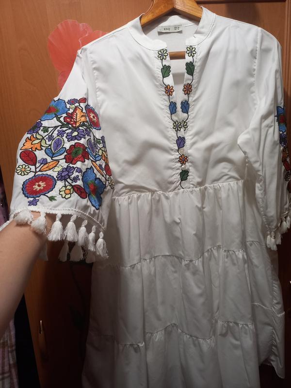 Платье в украинском стиле с вышитыми рукавами и рюшами