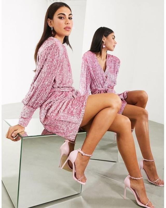 платье на запах с отделкой пайетками в пайетках asos Uk 8 Свободный крой. Подойдет как на хс, так и на м