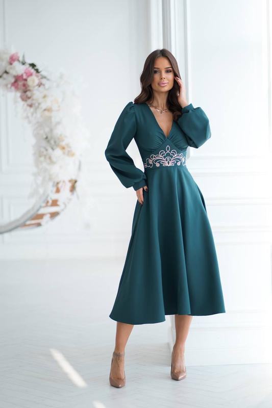☘️☘️☘️НОВИНКА ☘️☘️☘️ СУКНЯЯ С ВЫШИВКОЙ НА ТАЛИИ Размер S (42),М (44),L (46) Тканина: костюмка + вишивка Длина платья : 115см Рукава: 65 см Цвета: черный, молочный, бутилка Изысканное платье длины миди с контрастной вышивкой на талии. Глубокий V-образный вырез визуально удлиняет шею и добавляет образу нотку романтичности, а длинные рукава с легким объемом придают мягкость и плавность линиям. Цена: 1200 грн
