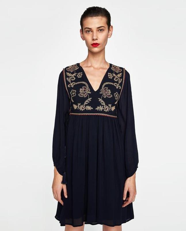 Zara платье с длинными рукавами платье -вышиванка вышивка из бисера праздничное платье с д...