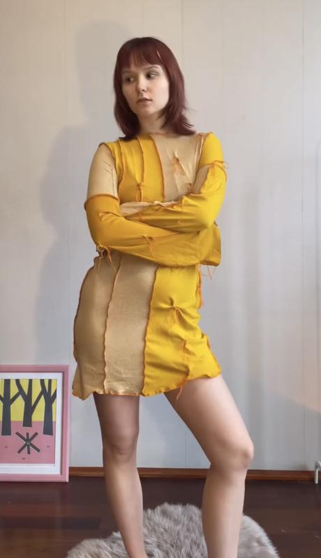 Сукня осіння patchwork upcycle жовта s/m ручна робота