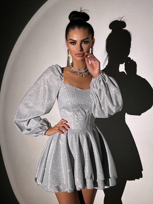 Сияющее корсетное платье с пышной двойной юбкой и объемными рукавами ▫️тканина: люрекс ▫️размер: S и М ( L + 200 грн)