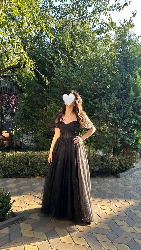 Шикарное вечернее платье, я о такой мечтала и долго искала) Купила на свадьбы брата и одела один раз. Платье было на химчистке (ких пятен не было, просто чтобы на продажу уже чистую выставить), поэтому оно чистое ждет свою новую хазяйку) Мой рост 164 см, каблук 5-6 см на фото. Если вы немного выше - то можно взять красивые туфли с каким-то элементом на носике, будет очень красиво смотреться. Параметры дополнительные: бедра 100, грудь 85, талия 70 (на талии позади корсет, на последнем фото показала). Подойдет на S, M, L Черное платье с блестками. Купила в шоуруме при 13 000 грн + 2500 грн за то, чтобы пришили мини рукава на плечах и укоротили. Поэтому суммарная стоимость 15 000 грн, продаю почти в 2 раза дешевле Живу в Киеве, правый бедер. Могут встретиться и отдать на примерку за такси к вам и обратно