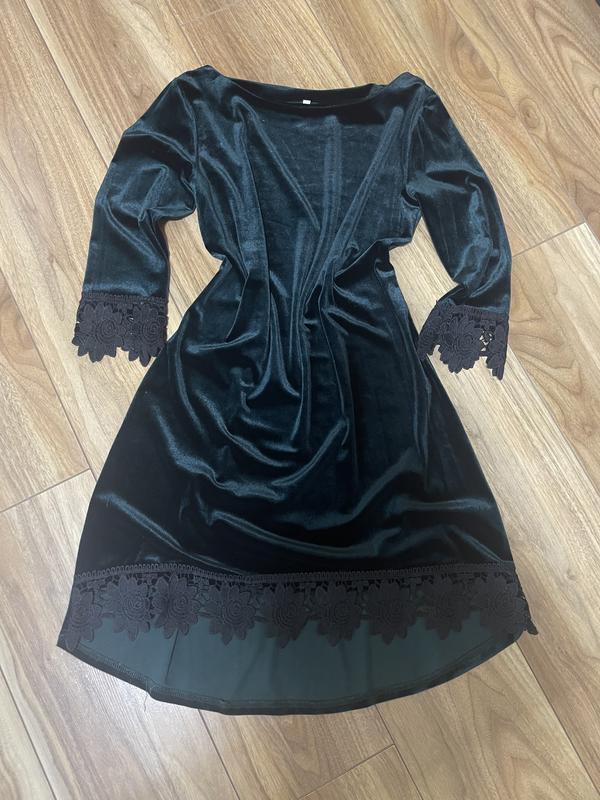 Размер 46. Стан нового. Груди 42 см Талия 40 см Стегна 44 см Длина 80 спереди и 90 сзади Рукав с кружевом 50 см На солнышке переливается, велюр. Тянется.