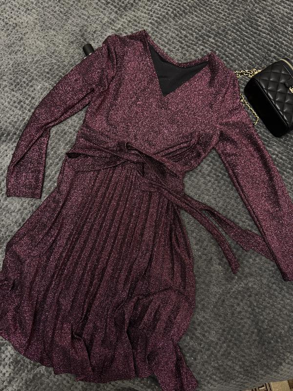 Гарна святкова сукня в блискітках тканина люрекс приємна до тіла не кусається😻 дефектів немає, знизу спідниця плісе зверху на запах і є поясок