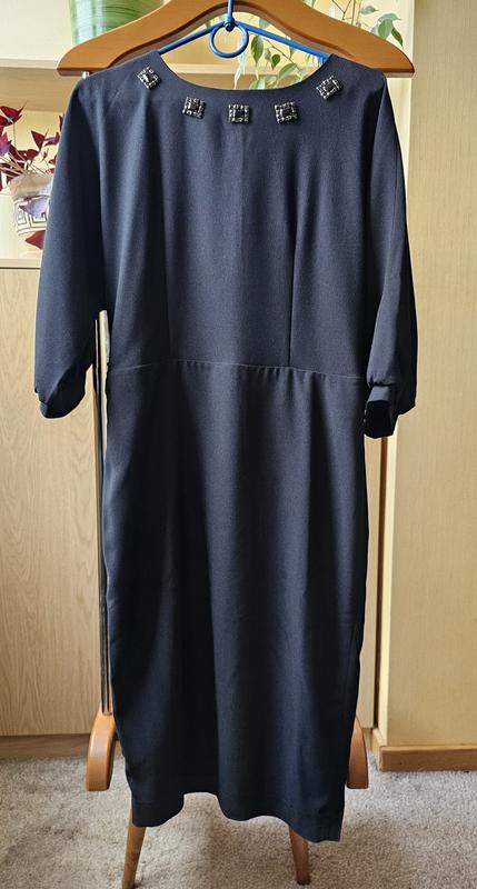 Праздничное платье украинского производителя Evercode. Рукава 2/3. по горловині прикрашена стразами. На ремешке. Небольшой разрез сзади. Длина 102 см, Свободная в груди. Обхват талии 76 см