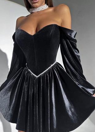 Сукня Мод: 1513-309 ▪️Размер: 42-44, 46-48 ▪️Тканина: мерехтливий оксамит ▪️Цвет: черный, красный Украшена элементами камней на талии, застегивается на молнию. Ткань с маленькими блестками ✨