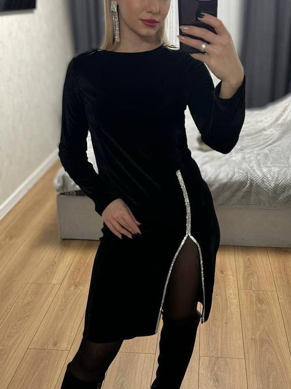 Арт 1459-120 ☑Цена 800 грн ☑Размер:42-44,46-48 ☑Тканина: оксамит ☑Цвета:черный Соблазнительное и яркое платье из бархата и качественных камушек, которые будут ярко сиять в вечернее время