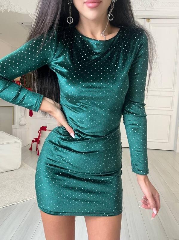 Платье Джулия Ткань велюр в серебряную точку, ткань хорошо тянется и приятная к телу Размер единый 42-44 Цвет: зеленый и морская волна Все фото РЕАЛЬНИ❗️