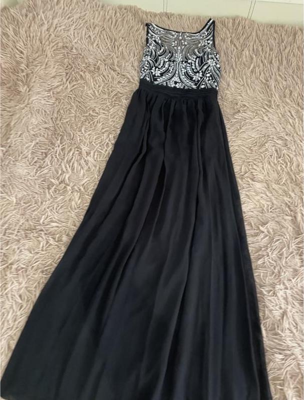 Очень красивое вечернее платье. Из легкой ткани на подкладке. Украшенная передняя часть платья камнями, и имеет чашечки, задняя часть платья выполнена из резинки, что дает возможность красиво подчеркнуть вашу фигуру. Замеры: длина платья - 142 см, ПОТ-33 см, ПОГ-38 в спокойном состоянии, можно и до 49 см (за счет резинки)