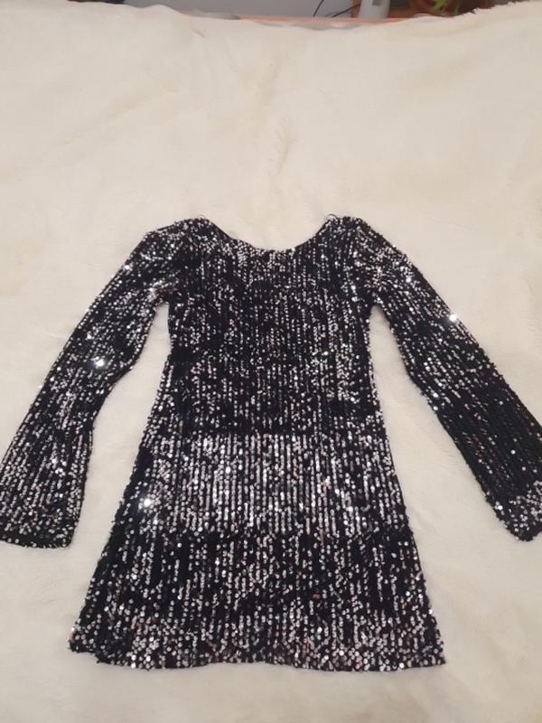 Сияющее платье в пайетках с длинным рукавом. Очень удобная, потому что пайетки на велюре, поэтому приятная к телу и не колется. Длина 76 см рукав 63 см Ширина груди 47 см