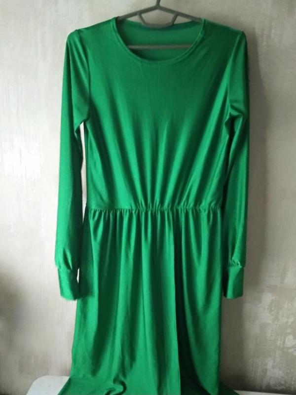 В прекрасному стані. Довжина : 157 см Груди: 39 см Талія: 35 см Бедра: 55 см Тканина еластична. Добре тягнеться. Є розріз від талії, на запах. У комплекті є пояс. Колір - насичено зелений. Як на першому фото.
