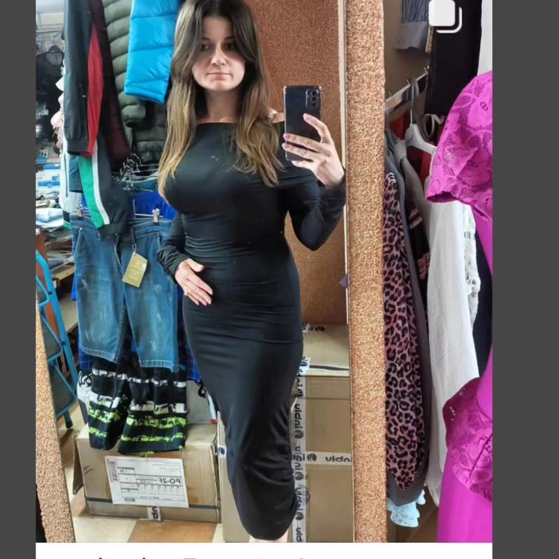 платье черное, длинное.