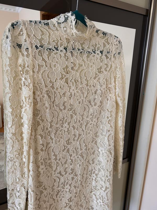 Изысканное платье с кружевом. Выглядит очень классно. Под низ одевается отдельно шелковая сукэнка (есть на фото). Состояние отлично. Подойдет на размер С-М.