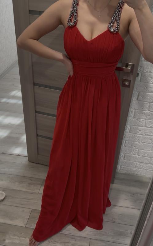 Червона шифонова вечірня сукня в пол. Шлейки вшиті крупним бісером. Під низом є підкладка. Збоку змійка і застібка. Чашечки паралонові. Тримають форму і не просвічуються. Заміри не роблю! Обмін не цікавить! Ціни мінімальні! Будь ласка, якщо вас не влаштовує щось, не витрачайте мій і свій час. Дякую! Мої параметри 80/60/88 зріст 165