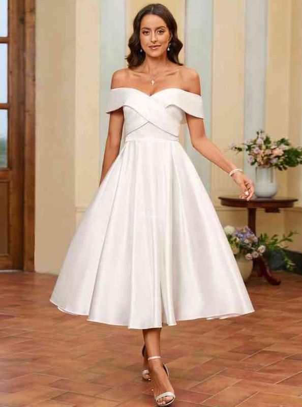 Праздничное платье а-силуэта jj's house с открытыми плечами длиной миди из атласа (290920)