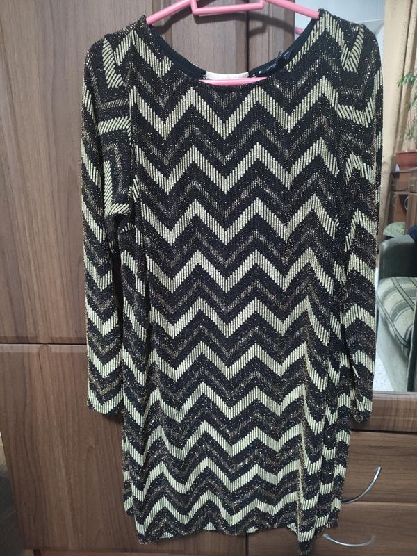 нарядное платье с металлической блестящей нитью с подкладкой в очень красивом состоянии, почти новое, идет на размер 50-52 хотя на бирке указано европейский -48, украинский- 20