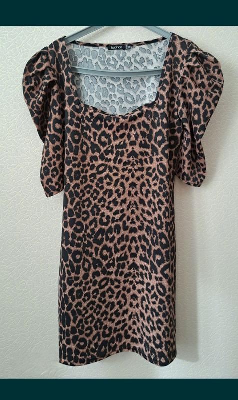 Стильное платье английского бренда Boohoo модный леопардовый принт ткань хорошо тянется Размер М, L. (Полной 44 размер)