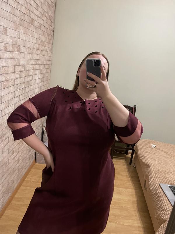 Праздничное бордовое платье с рукавами три четверти. Красиво и мягко переливается ткань, за счет чего скрывает недостатки. Также преимуществом является то, что на шее уже пришитые бусинки, поэтому образ будет дополнен даже без украшений. Смотрите также другую одежду у меня на странице)