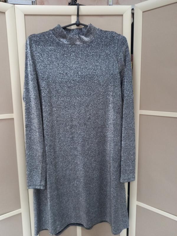 Платье с длинным рукавом из люриксовой ткани серо черного цвета.В идеальном состоянии.Замеры :об.гр.46см.,длина.укни 93см.