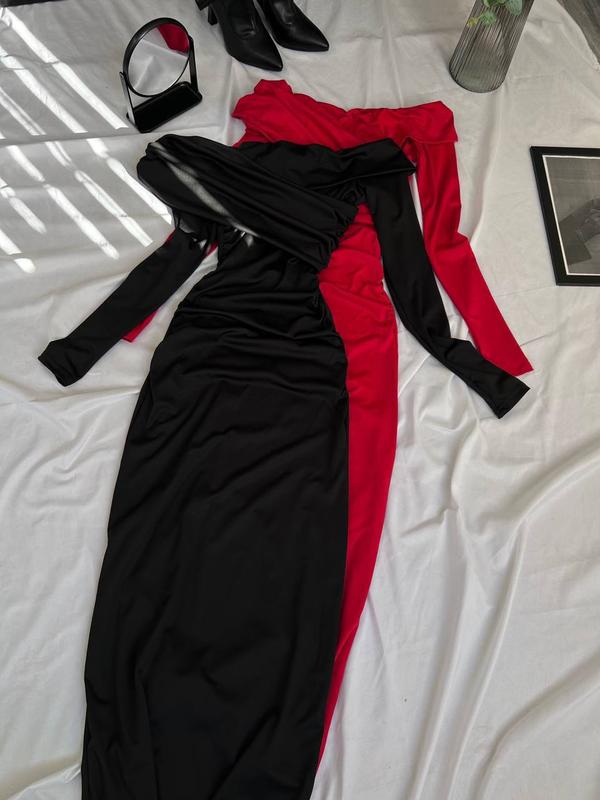 Сукня 🔘Мод 1094 🔘Размеры - 42-44, 46-48 🔘Цвета - черный, бордовый, красный, шоколад 🔘Ткань - микродайвинг Платье, которое влюбляет. Изысканное длинное платье по фигуре идеально подойдет к любым событиям. Надевается на плечи, хорошо держится. Ткань приятная к телу и хорошо тянется.