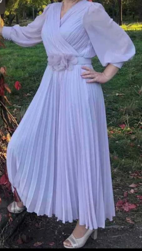 Платье сплиссированной юбкой очень красивого нежного цвета. пояс в комплекте