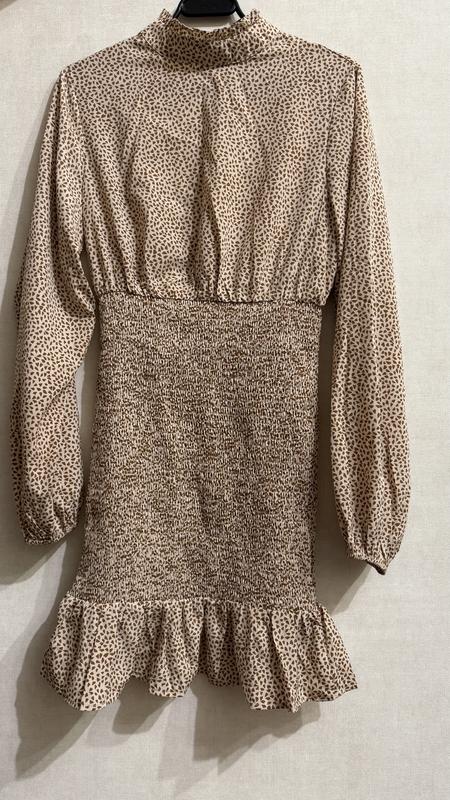 Это элегантное женское платье с длинными рукавами в бежево-коричневых тонах с мелким принтом. Верхняя часть имеет легкую, воздушную ткань, в то время как область талии выполнена из собранного эластичного материала, красиво подчеркивающего фигуру. Особенности модели: ✔️ Длинные рукава с нежными манжетами. ✔️ Высокий воротник с застежкой на пуговицу. ✔️ Эластичная вставка на талии для идеальной посадки. ✔️ Стильный волан по низу добавляет романтичности. Это платье отлично подойдет как для повседневной носки, так и для особых случаев!
