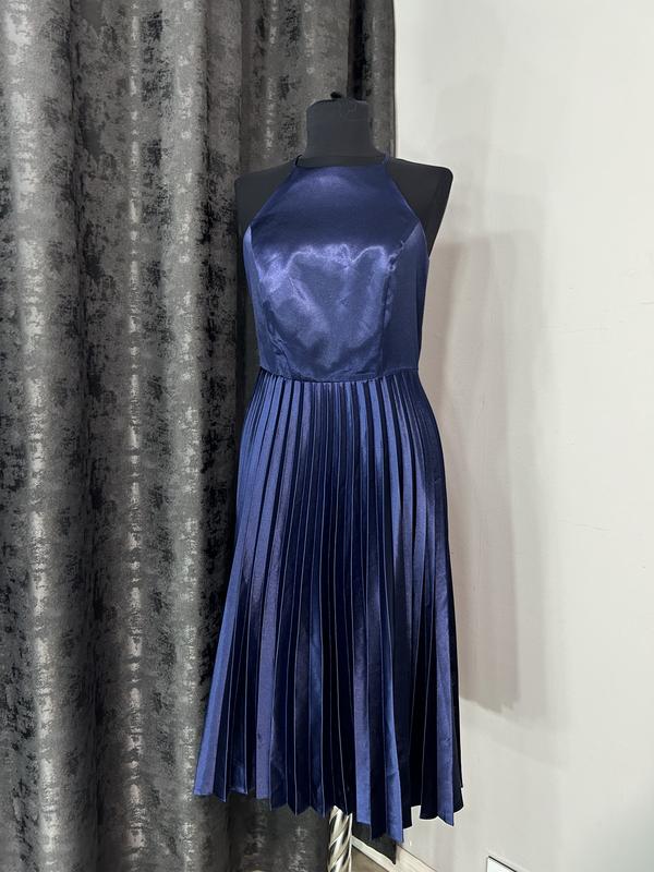 Дуже гарна вечірня сукня у синьому кольорі Довжина міді матеріал схожий на атлас Стан ідеальний , колір як на фото Манекен 86/63/92 Не електрезується