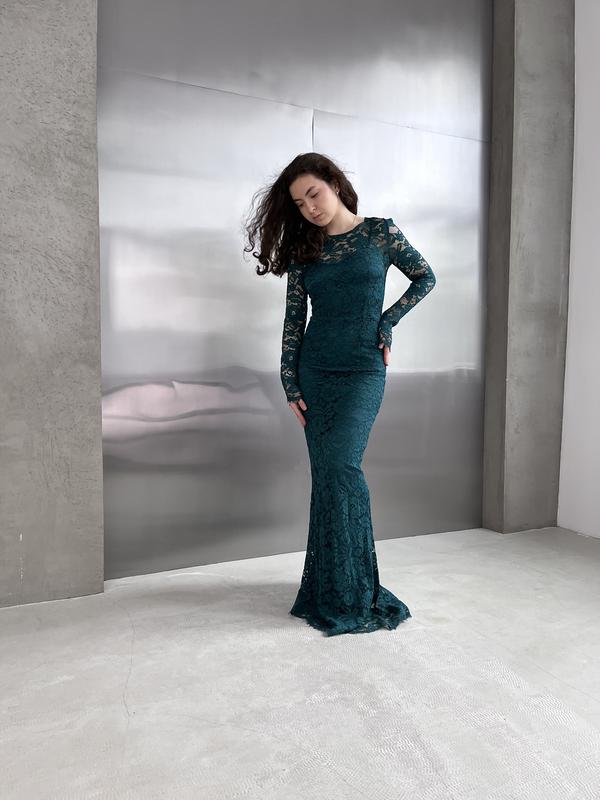 Невероятное кружевное платье изумрудного цвета, которое воспроизводит модель платья из коллекции известного бренда