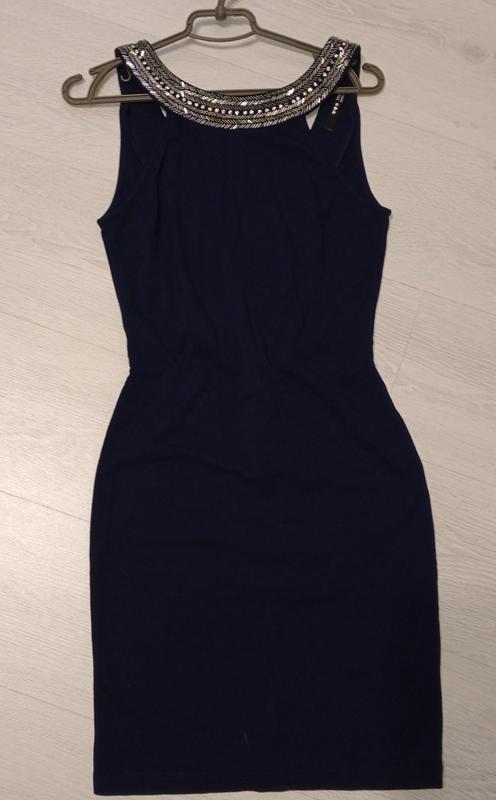 платье размер S. красиво украшено камнями и имеет красивый вырез спинки. имеет замок сзади и дополнительную застежку крючок.