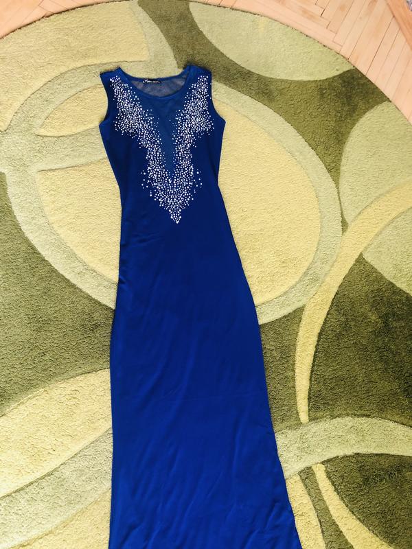 Вечернее платье в идеальном состоянии. Наделась только раз. Без дефектов. Цвет темно синий. Длинна 153 см. Отделенная камушками в зоне декольте, все камешки на месте. Идеально ложится по фигуре. Подойдет на размер 42-44 (С-М )