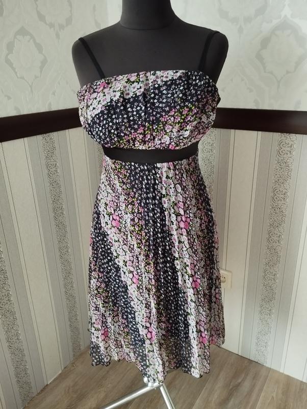 Платье на подкладке, бретели регулируются, юбка плиссе, по спинке молния, Пот 36, длина 93 (от верха бретелей). Стан идеален.