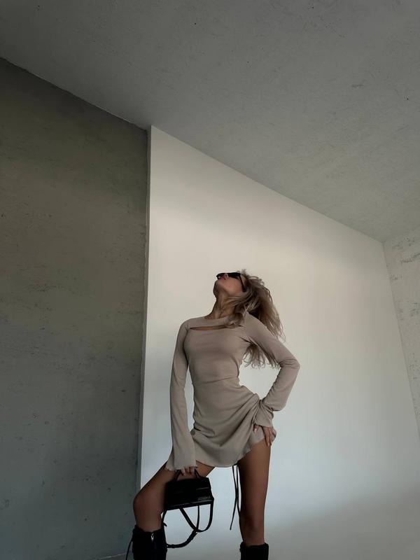 Сукня Цена: 620 грн Тканина - рубчик резинка Размеры - 42-44 и 44-46 Цвета - черный, беж и графит Платье, которое станет твоим любимым, длина мини, соблазнительный вырез, удобный крой, который садится на любую фигуру, сзади регулируется по талии.