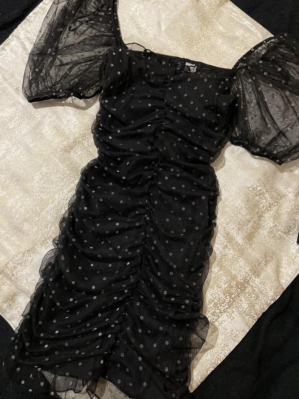 Размер XXS, XS платье мини, полностью приталенное, перчатки можно спускать. Есть подкладка, можно надевать без лифчика.
