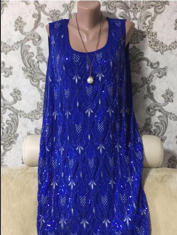 Шикарные фирменное платье усыпана всё мелкими стразами бусинками длина 104 грудь 124 – 134 хорошо тянется