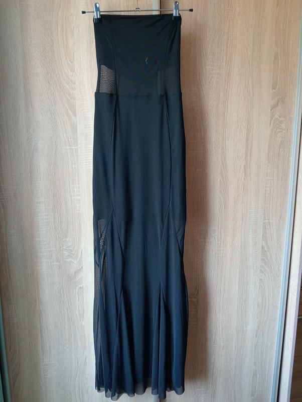 Шикарное длинное платье со вставками из сетки, сверху на резинке, сзади застежка, ткань хорошо тянется р. М длина 128, полуобхват груди 34, по талии 31