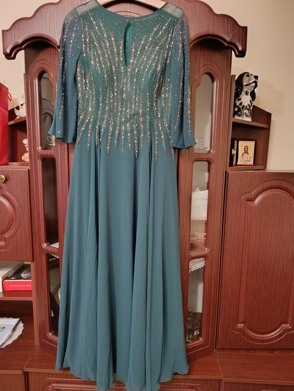 Длинное вечернее женское платье изумрудного цвета, украшенное бисером. 44 размер