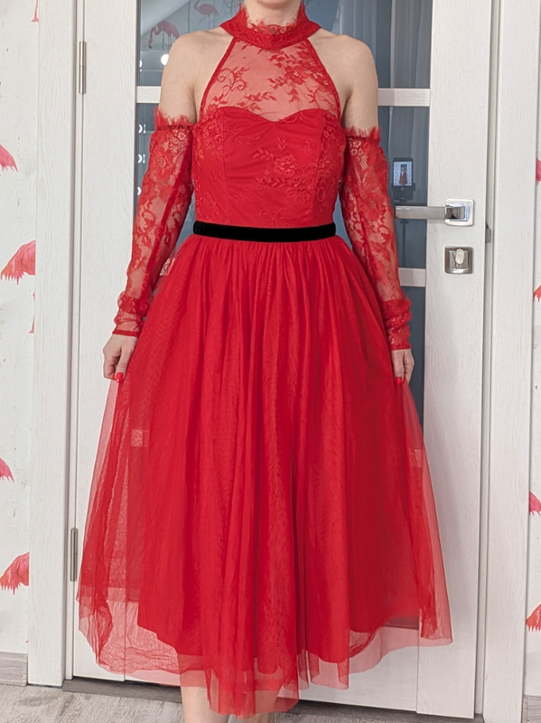 Платье женское красное фатиновое с черным бантом и открытой спиной asos