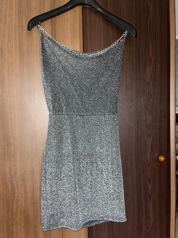 Вільний обʼєм грудей Талія: До 75 см Стегна тягнуться Довжина сукні: 75 см Дефектів немає